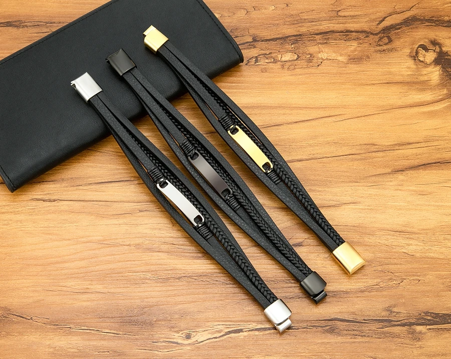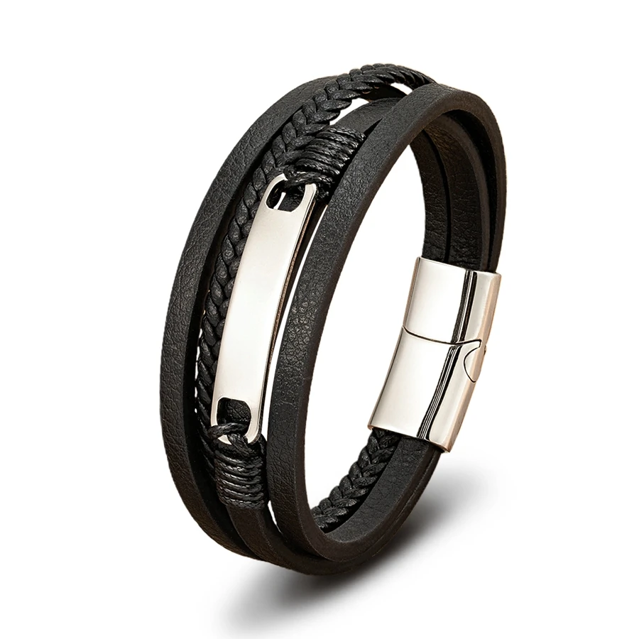 XQNI Multi-layer Braided Leather Wrap Bracelet Men Cool Trend Stainless Steel Casual Buckle Bracelet Jewelry Accessories Gift mon