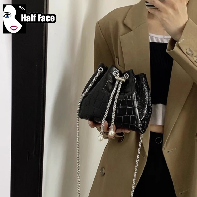 Y2K Girl Harajuku Women’s Gothic Handbags High Street Punk Streetwear One Shoulder Casual Chains Drawstring Crossbody Bags tote