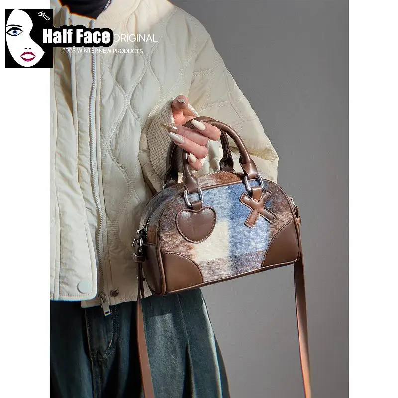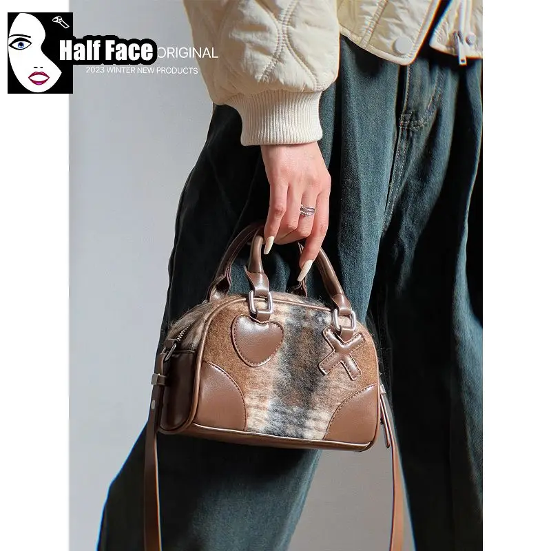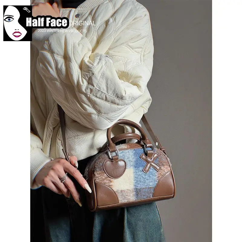 Y2K Girls Harajuku Women's Gothic Punk Lolita American Style Ladd Retro Plaid Pillow Bag Mini One Shoulder Crossbody Bags Tote