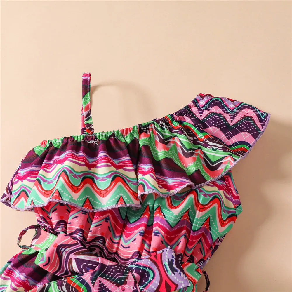 ZAFILLE Baby Playsuit Striped Belted Girl Jumpsuit For Kids 2023 Off Shoulder Summer Overalls For Children Toddler Girl Clothes
