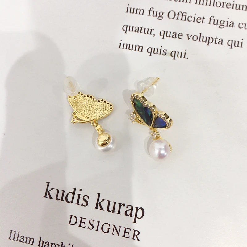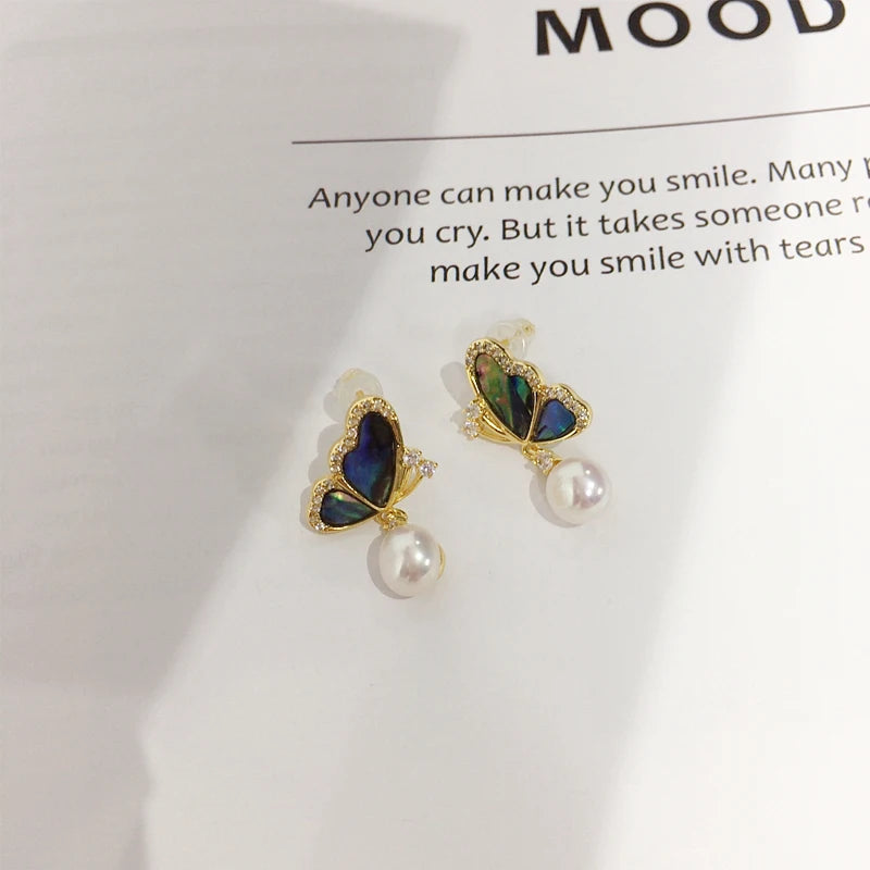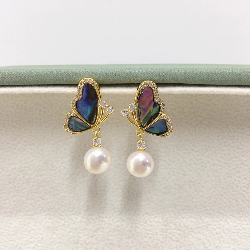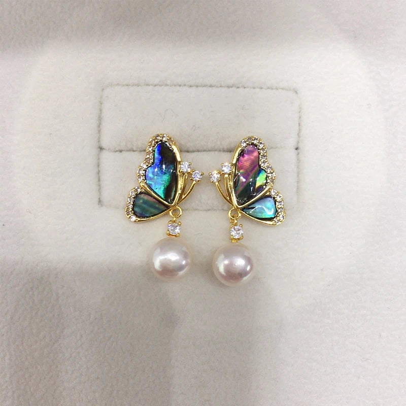 ZHBORUINI 2024 Natural Freshwater Pearl Earrings Colorful Abalone Shells Dynamic Pearls 14K Gold-Plated S925 Pure Silver Needles