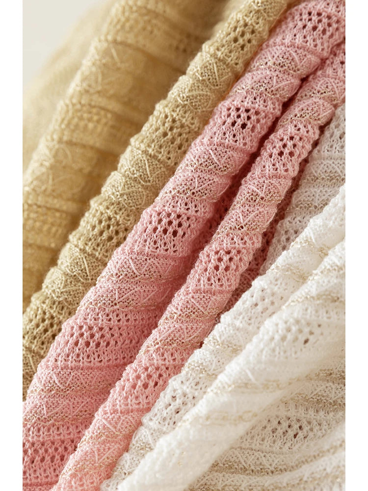 ZIQIAO Petite Hollow Out Round Neck Pink Knit Top For Women's 2024 Summer New Loose Short Sleeved Loose T-shirt 24ZQ92213