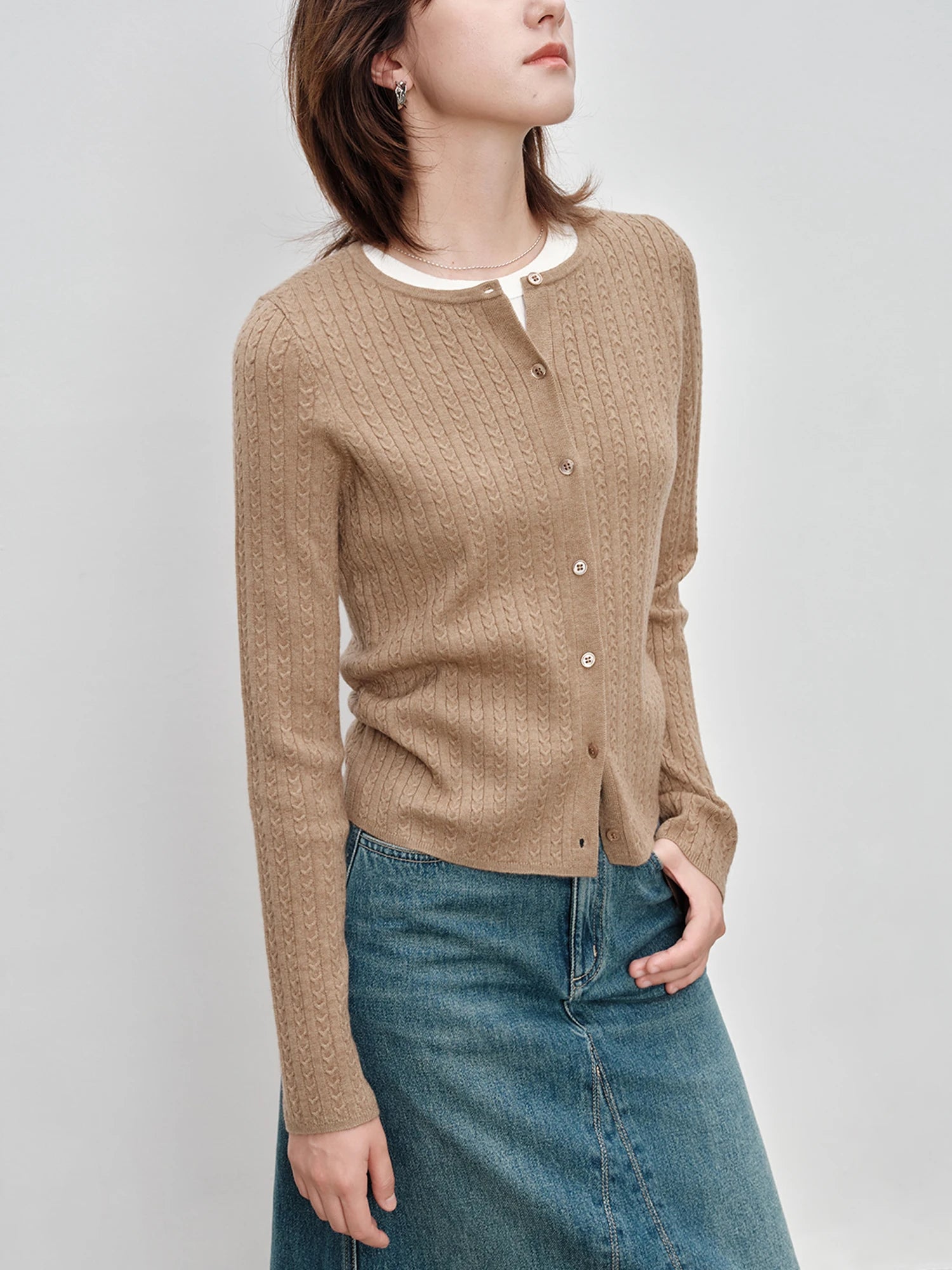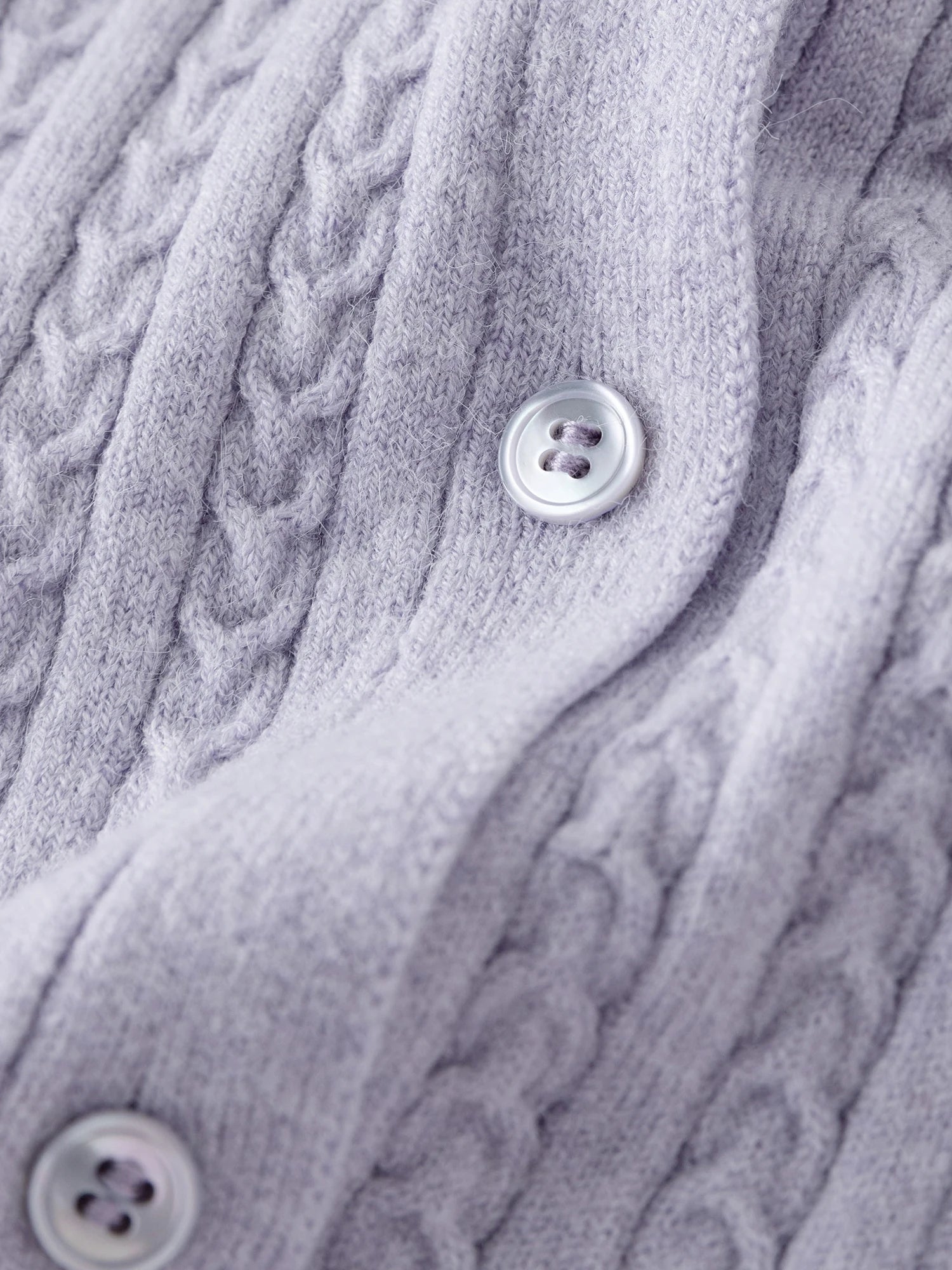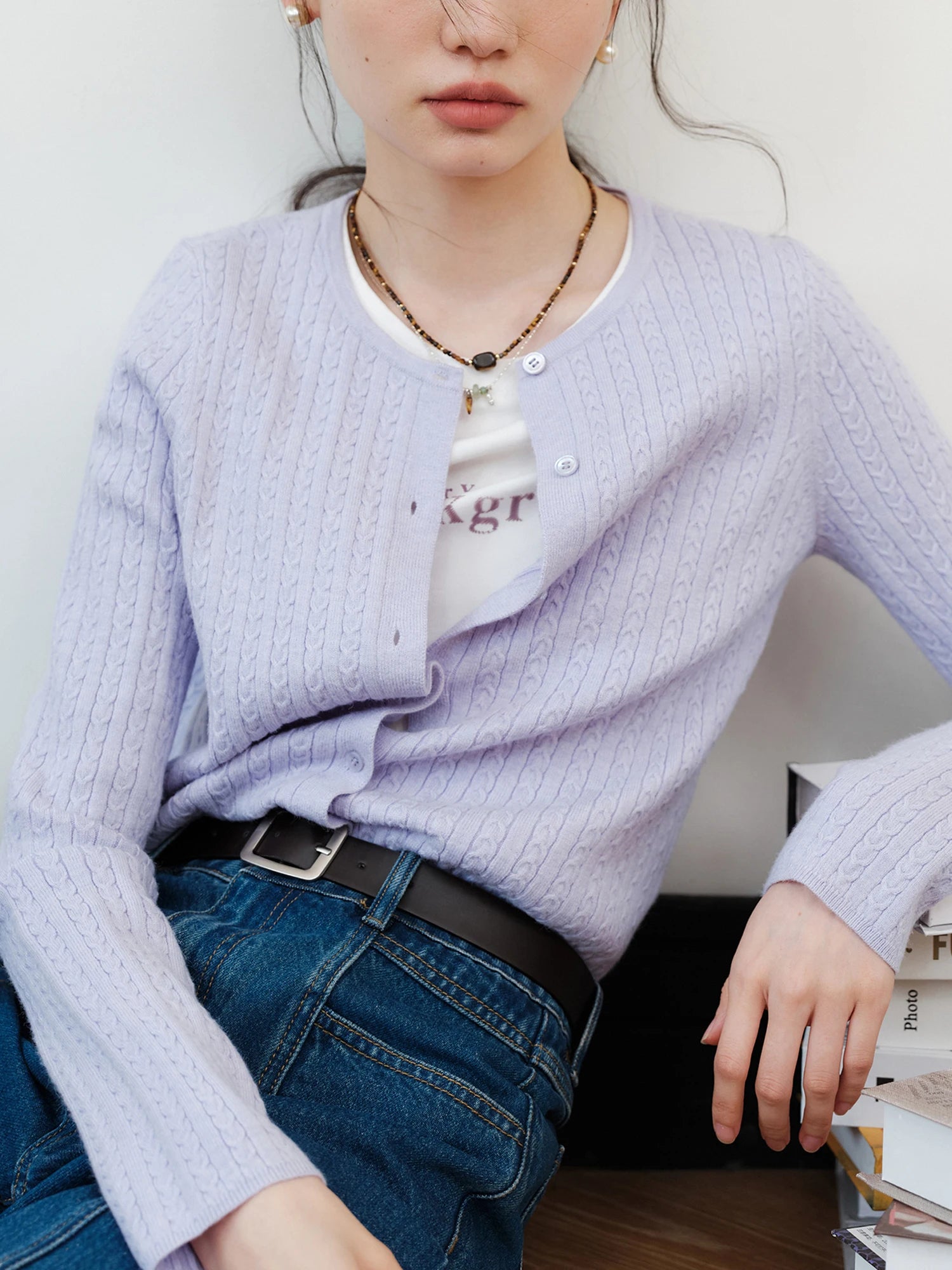 ZIQIAO Petite Purple Twisted Flower Round Neck Knitted Cardigan Women's 2024 Spring Autumn New Style Slimming and High-end Top