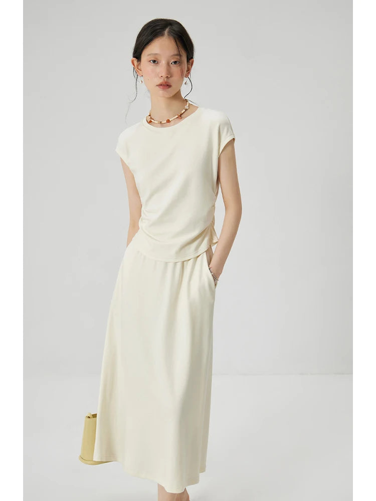 ZIQIAO Petite Relaxing Short Sleeved T-shirt Skirt Set for Women 2024 Summer New Slimming Women Top clothes