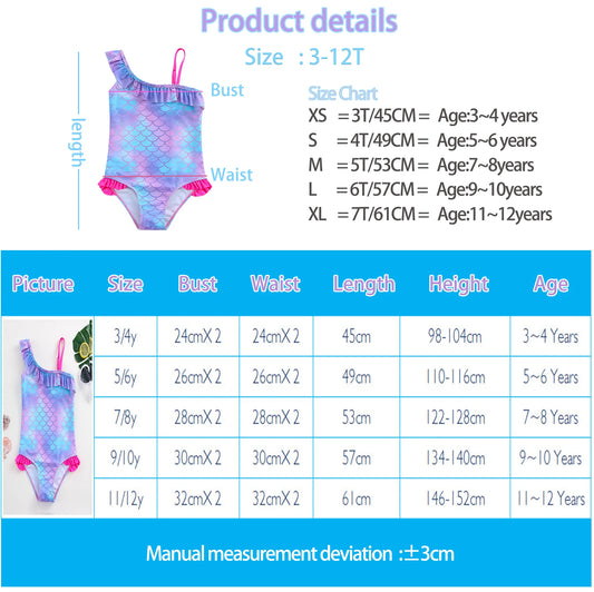 The Little Mermaid Girls Swimsuit One-Piece Bathing Suit Children Dresses Summer Swimwear Beach Suit Kid Wear Mermaid Fish Scale