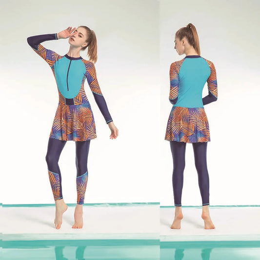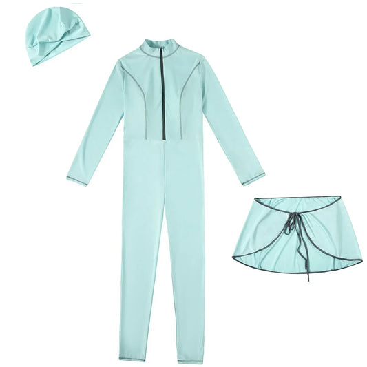 3 Pcs Swimming Sets Women Muslim Swimwears Front Zipper Full Cover Beach Swimsuit Muslim Swim Pants Set Islamic Modest Burkini
