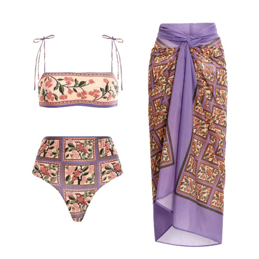 3PCS Beach Dress Bikini Set Pad Swimwear for women