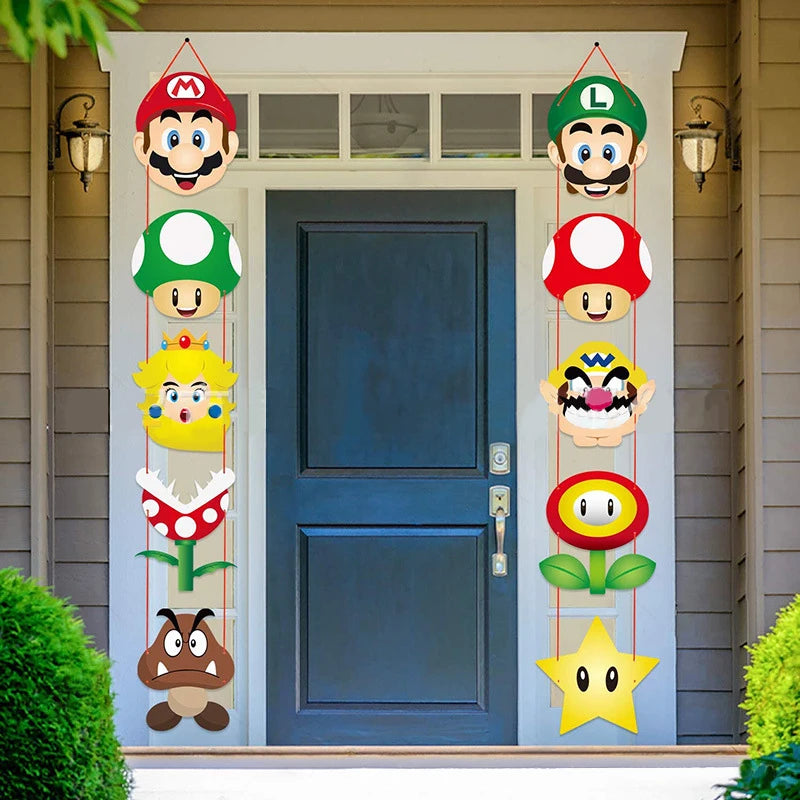 1 Pair Super Mario Bros Door Hanging Anime Party Wall Decorations Door Accessories Theme Party Kids Birthday Supplies Gifts
