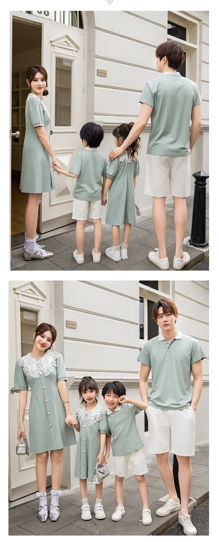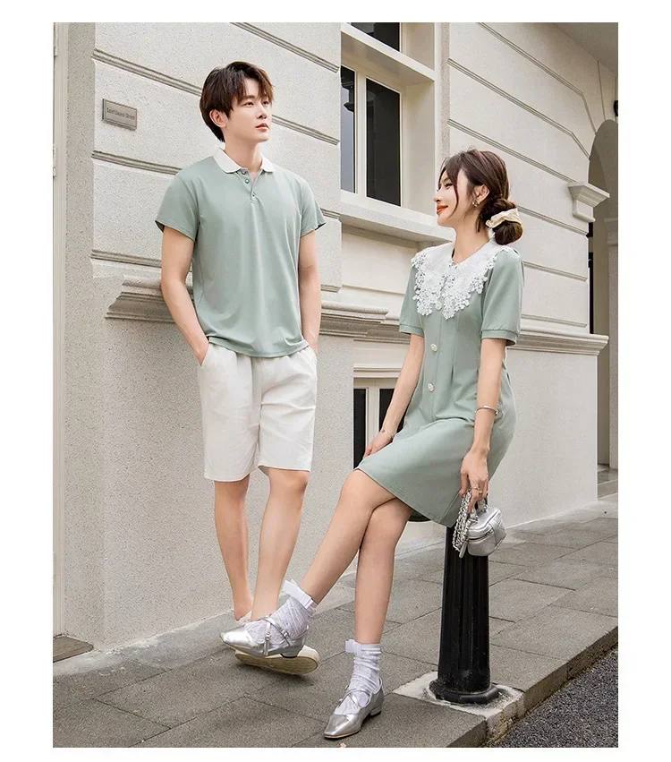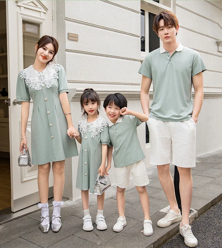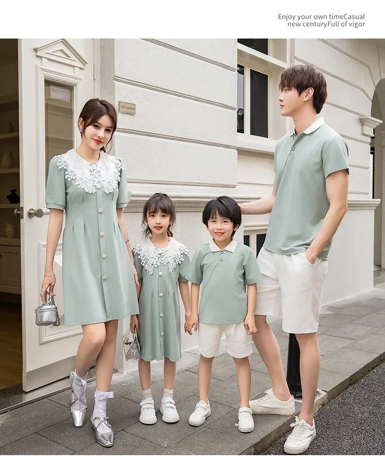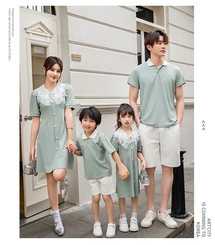 Clothes for The Whole Family Mom and Daughter Collar Dresses Dad Son Same Shirts Sets Matching Couple Outfits Summer