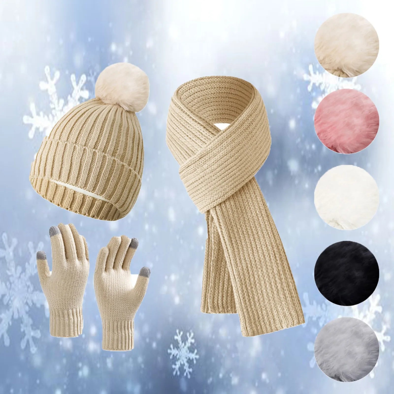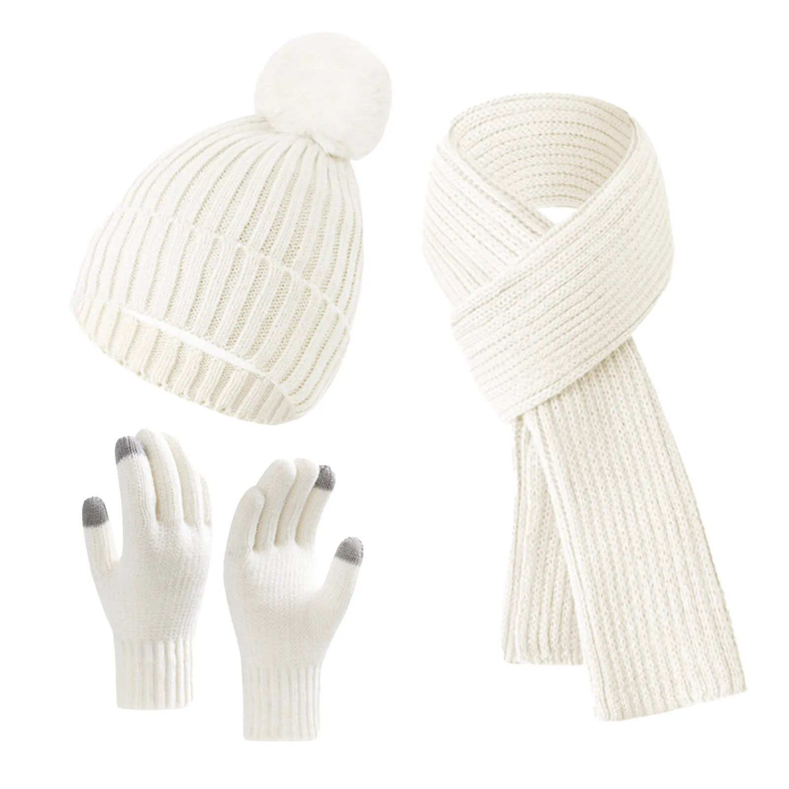 2024 Winter Warm Hats for Women and Man Knitted Wool Piled Thickened Gloves Hat Scarves Three-piece Beanie Practical Scarf
