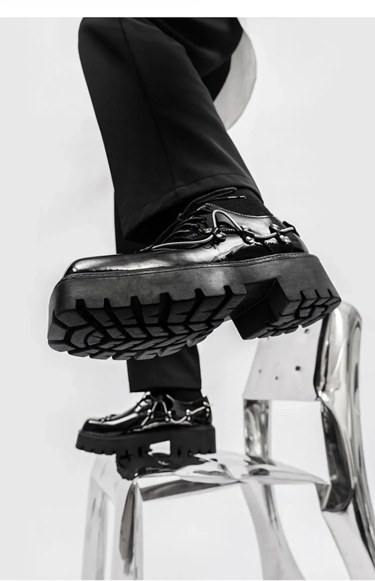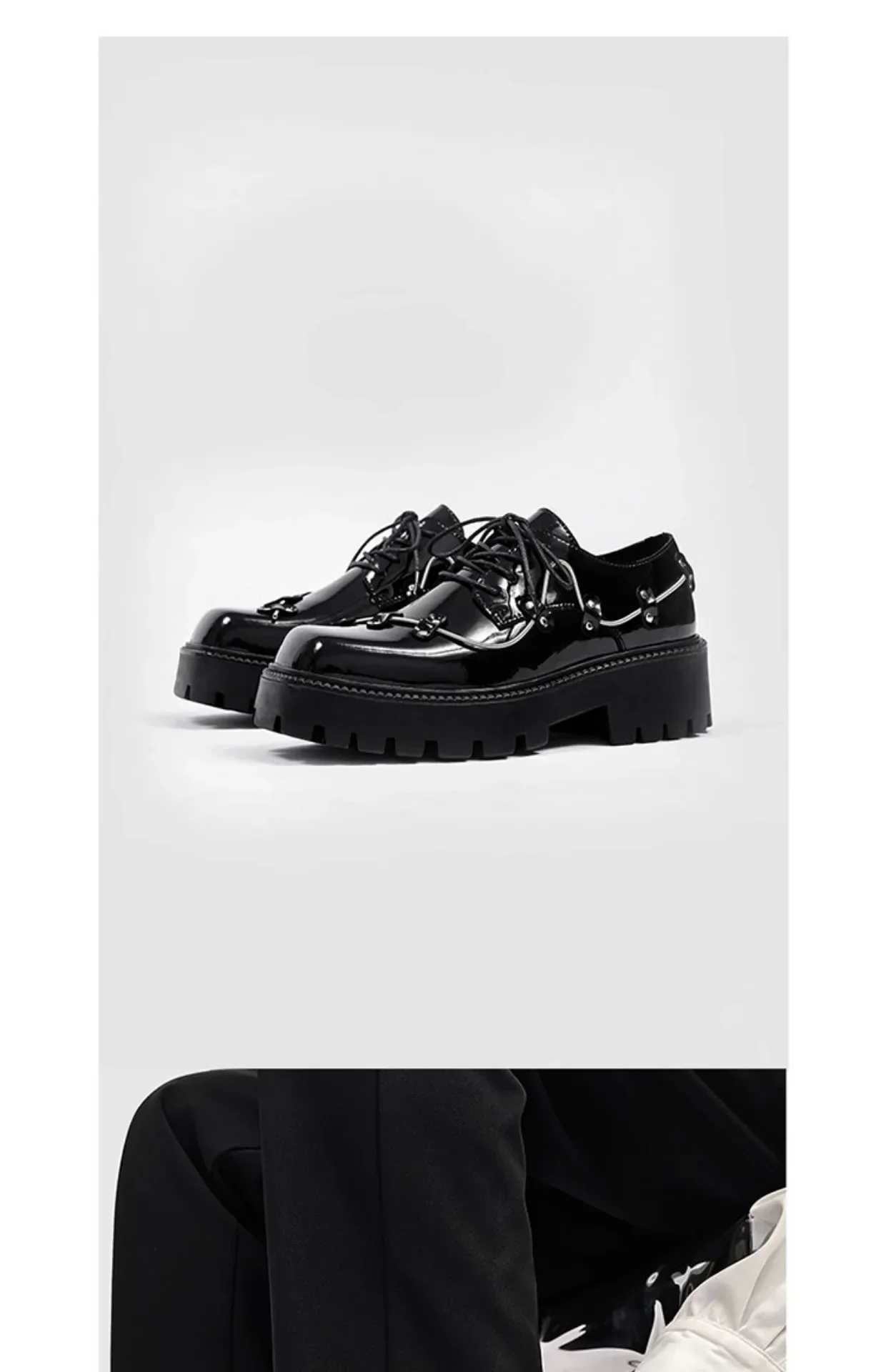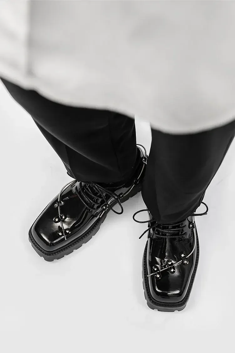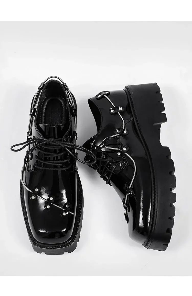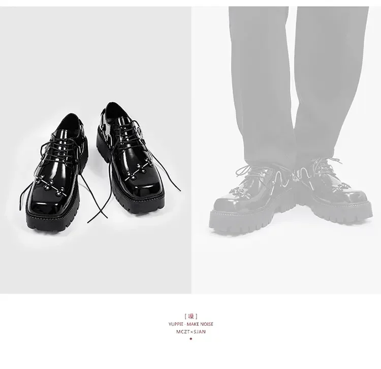 2025 New Small Style Thick Soled Derby Shoes Square Head Black Men's Business Casual Leather Retro Spring Decorative Shoes Men