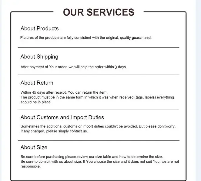 If you have any problem with your order, please contact us and we will do our best to make you satisfied.