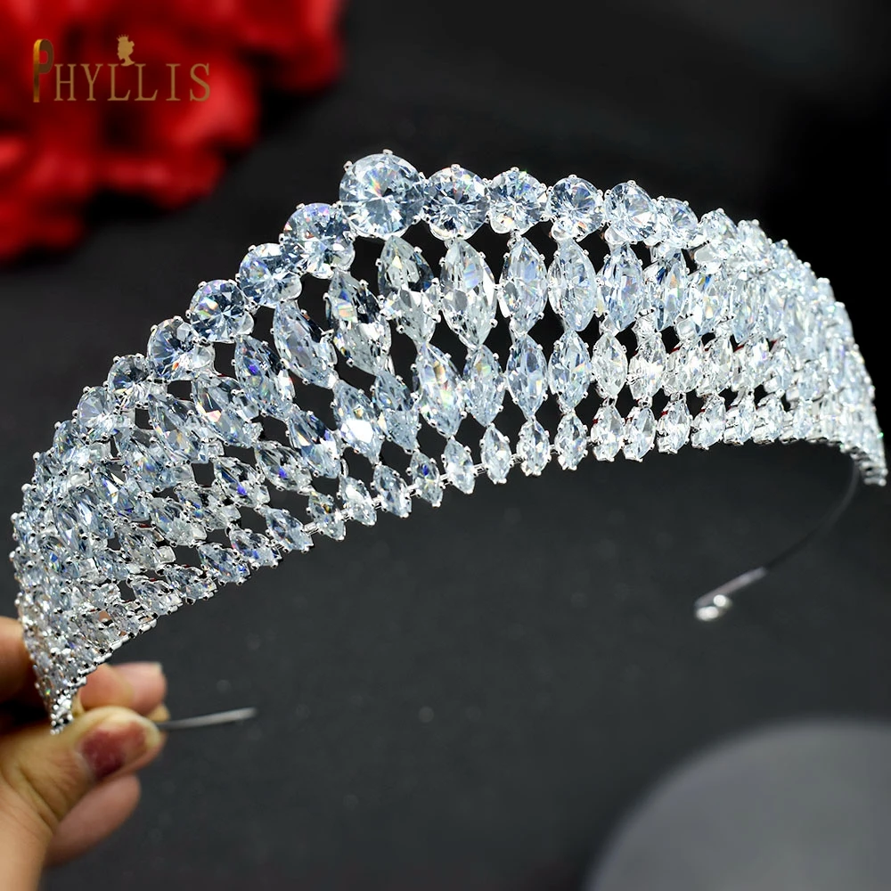 Luxury Bridal Headband Handmade Rhinestone Tiara Pageant Crown Wedding Royal Alloy Bridal Hair Accessories Jewelry