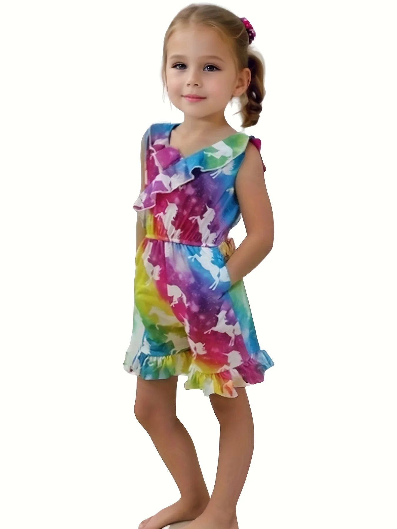Cutest Girl Floral Printing Jumper With Pockets Unicorn Flutter Ruffle Casual Everyday Wear Clothes