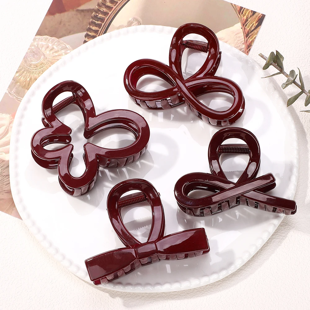 Elegant Geometric Large Ankola Red Hair Claws for Women Girls 2025 New Year Barrettes Hairpins Hair Grab Shark Clip Accessories