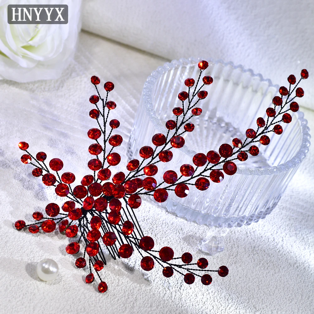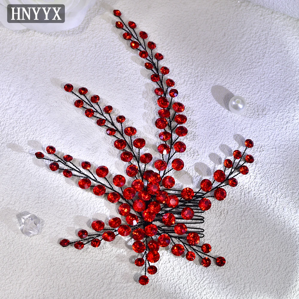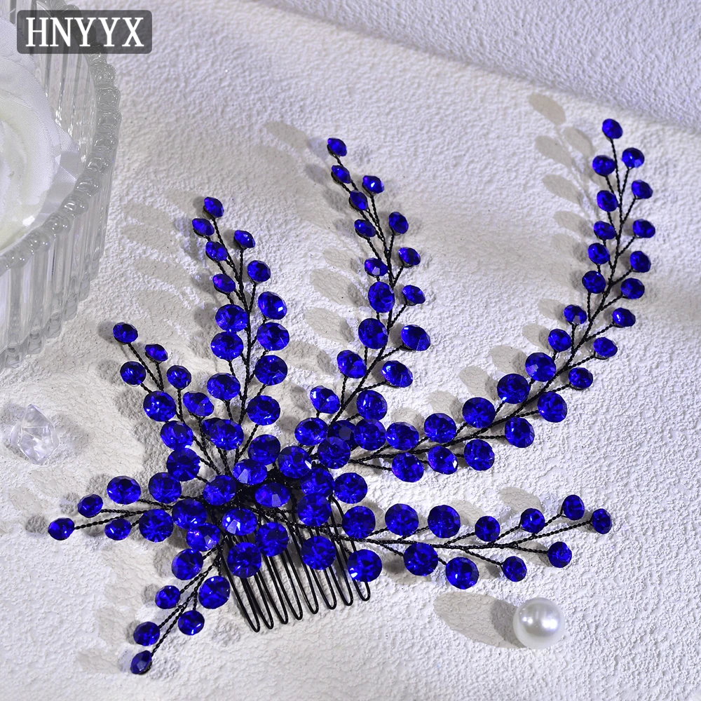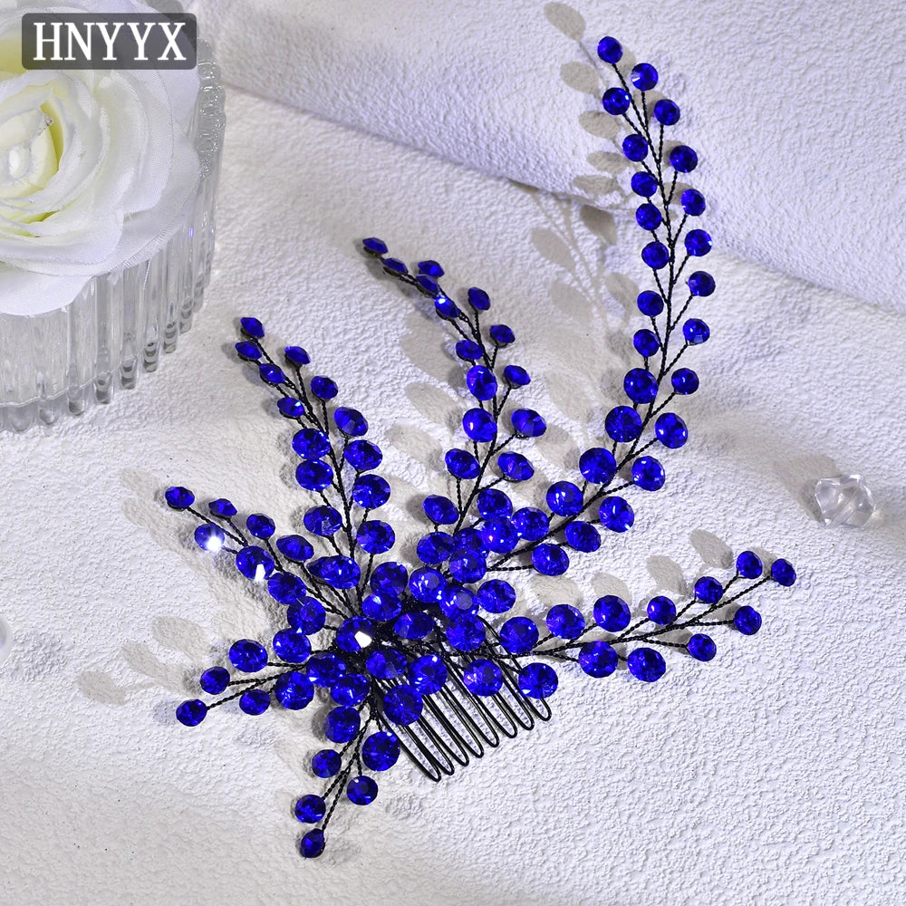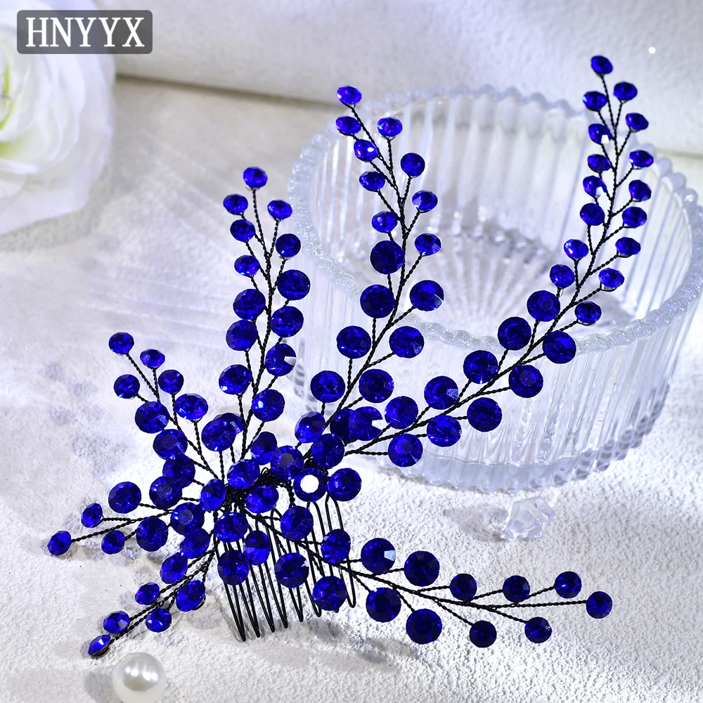 HNYYX Crystal Bridal Hair Comb Alloy Flower Hair Accessories Blue Rhinestone Hair Clip Elegant Hairpin for Women Party A231