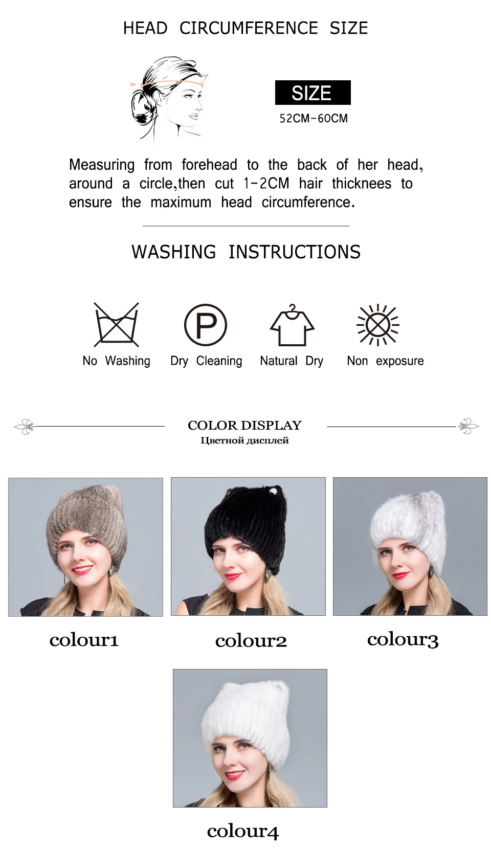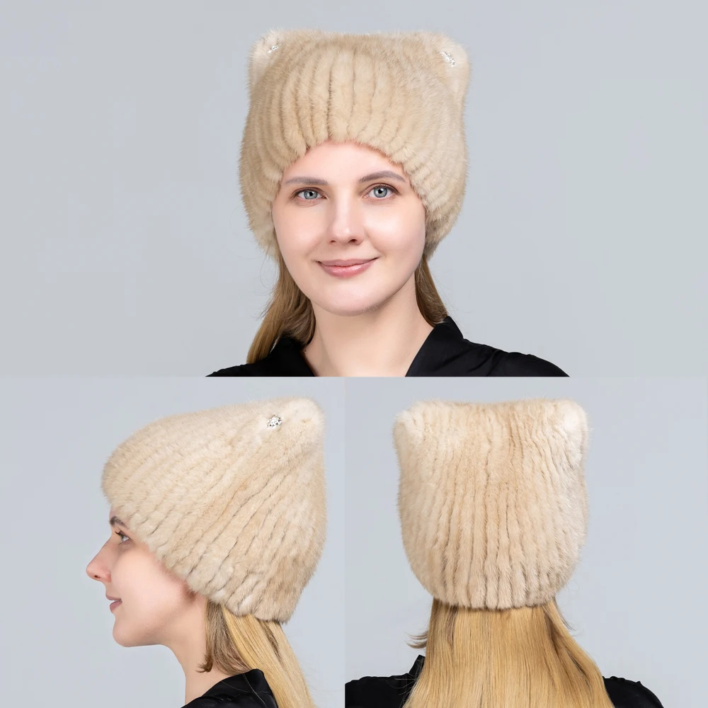 JINBAOSEN Winter Women's Mink Fur Hat Knitted Sweater Hat New Fashion Cat Ears Style European And American Style Ski Caps