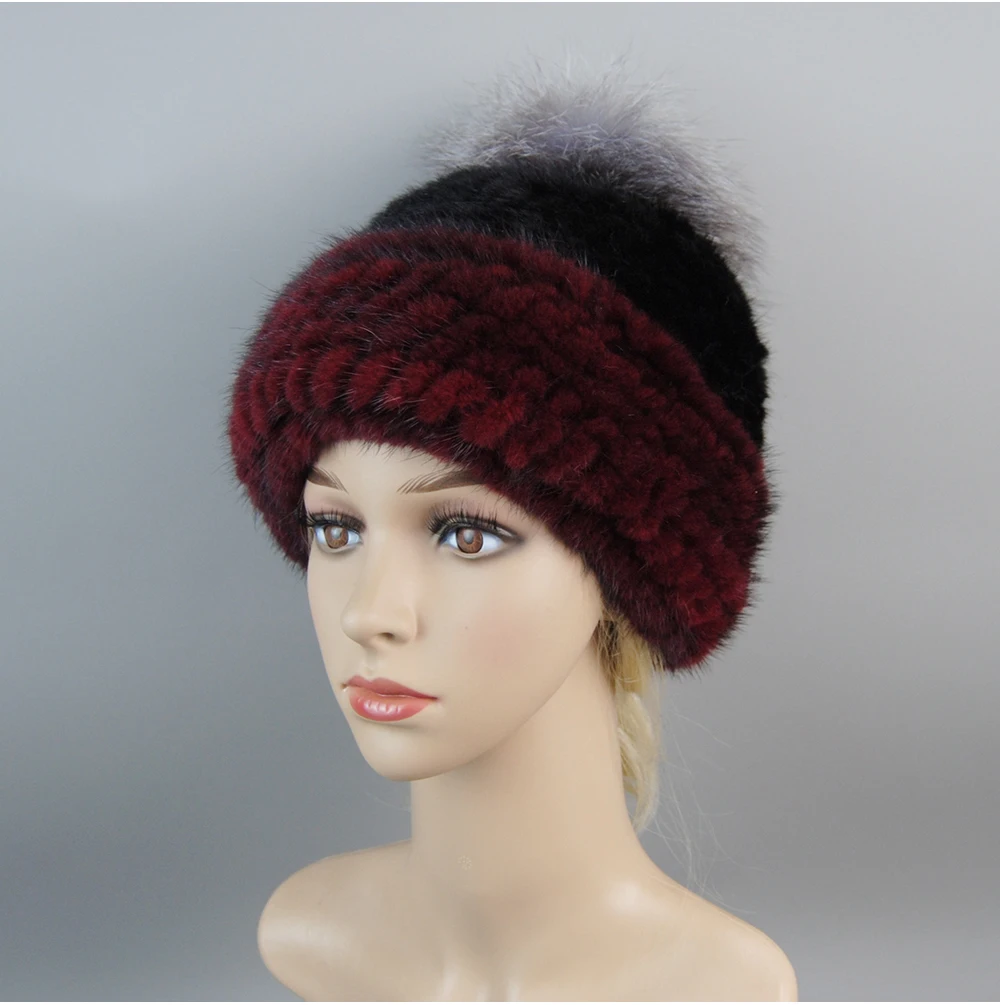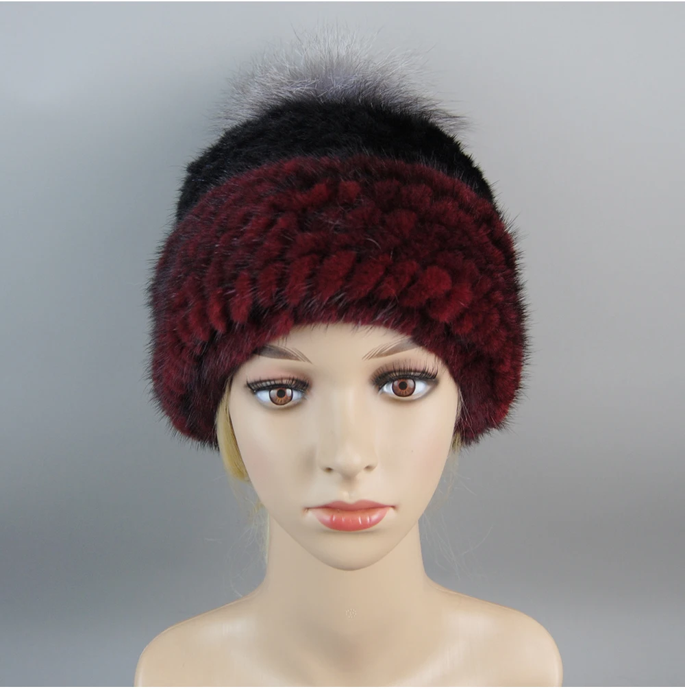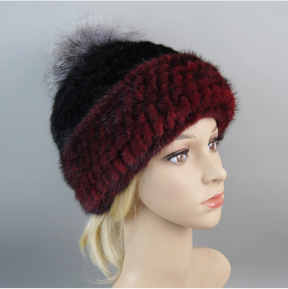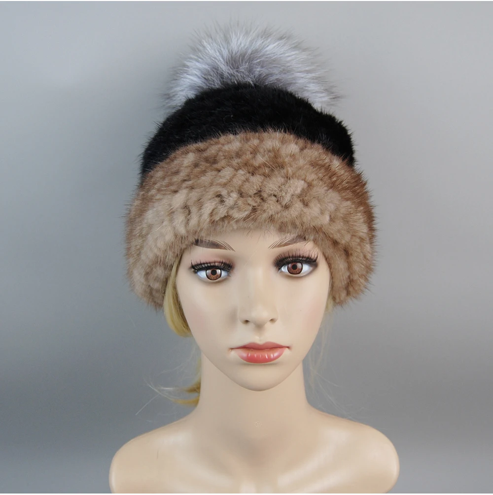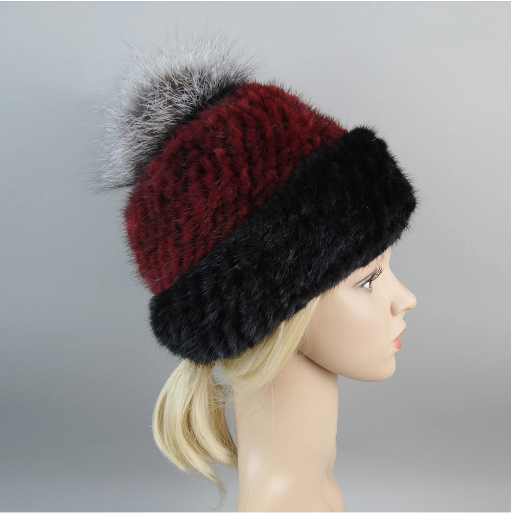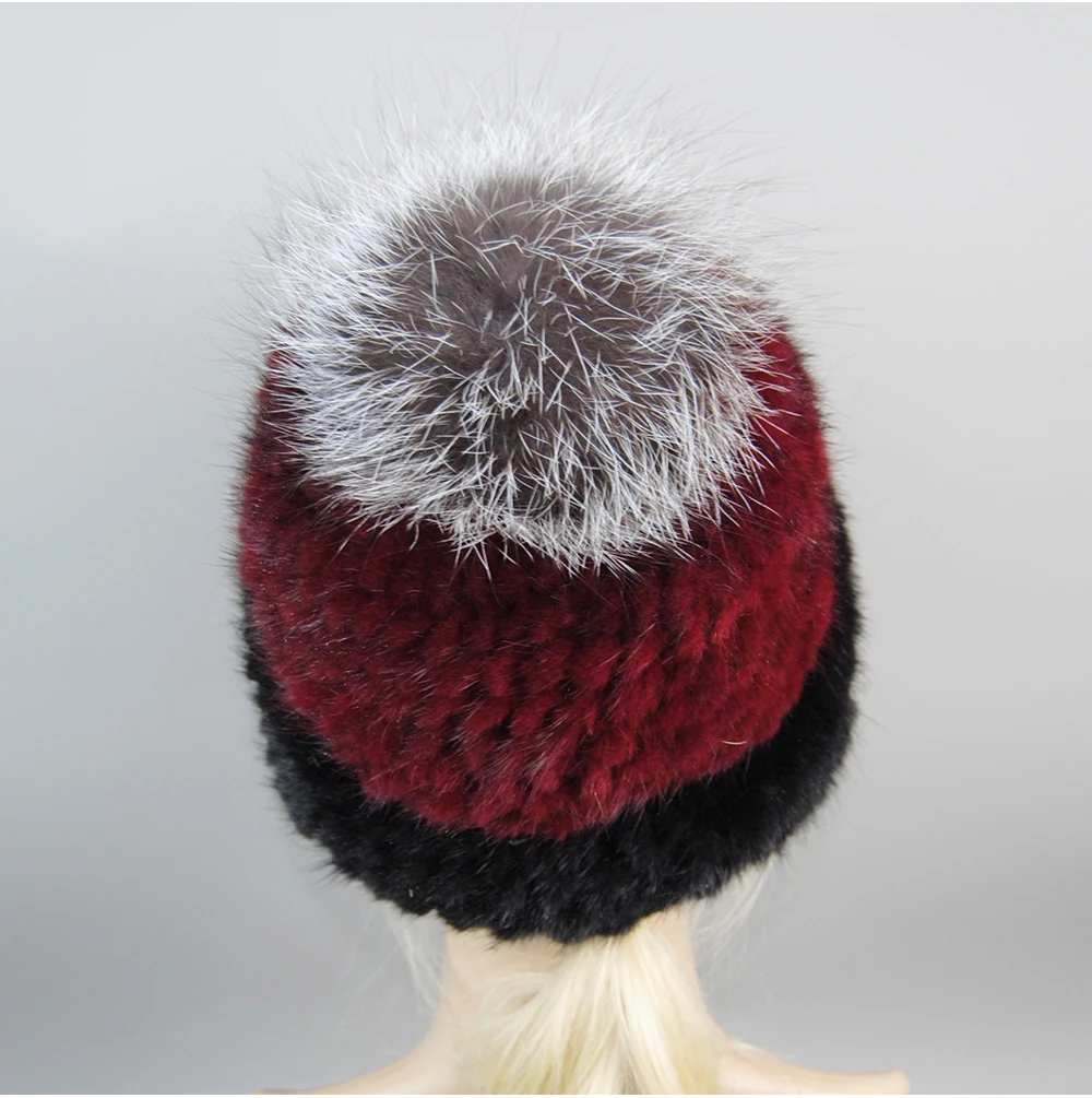 Real Mink Fur Hat For Winter Women Imported Knitted Mink Cap With Fox Fur New Hot Sale High Quality Women Beanies Hat
