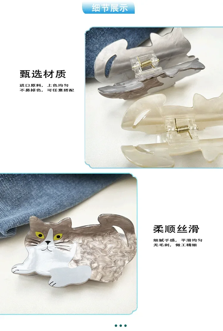 Refreshing World New Kitten Hair Claw Cute Cat Design Acrylic Hair Claw Clips Hair Accessories for Women Girls