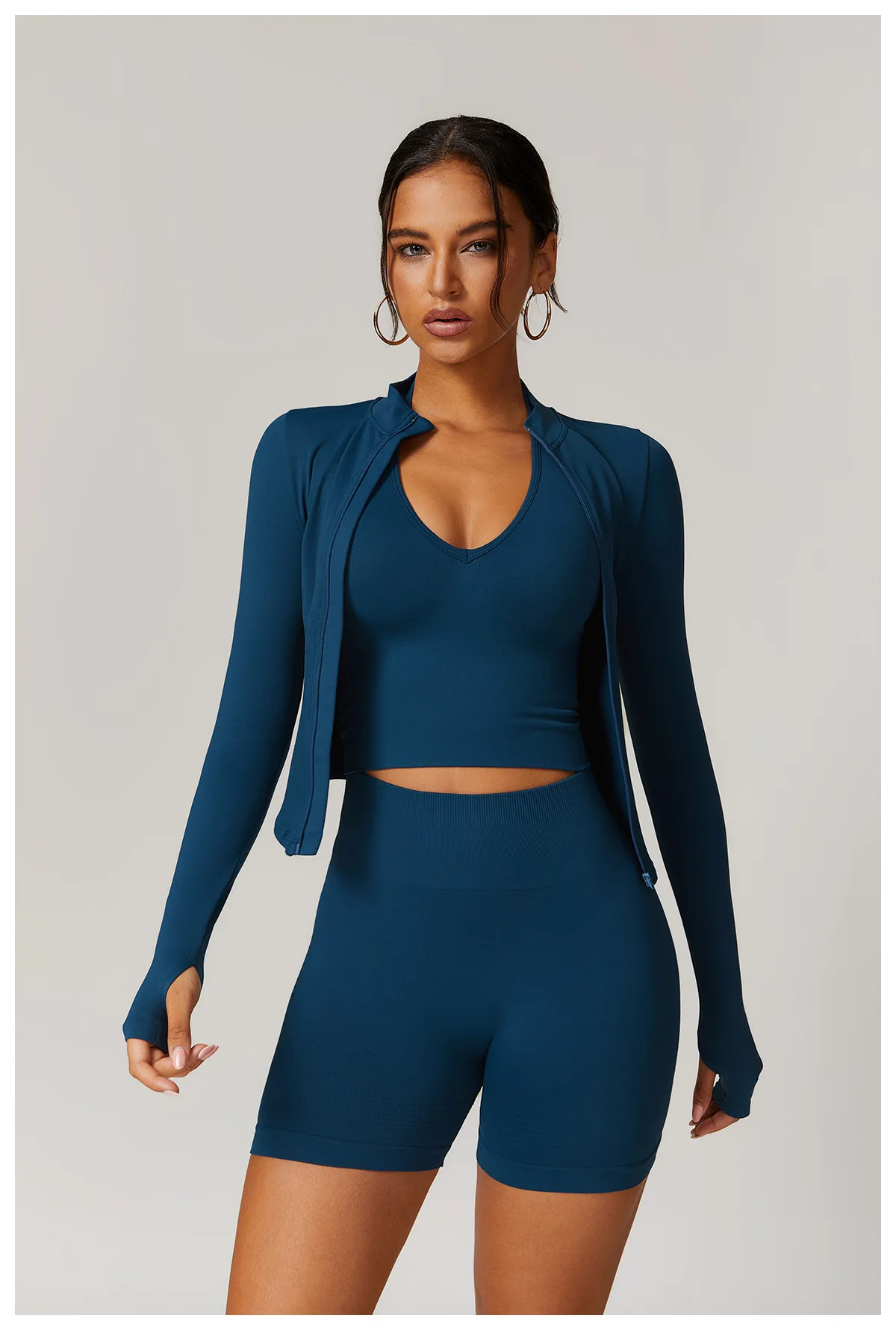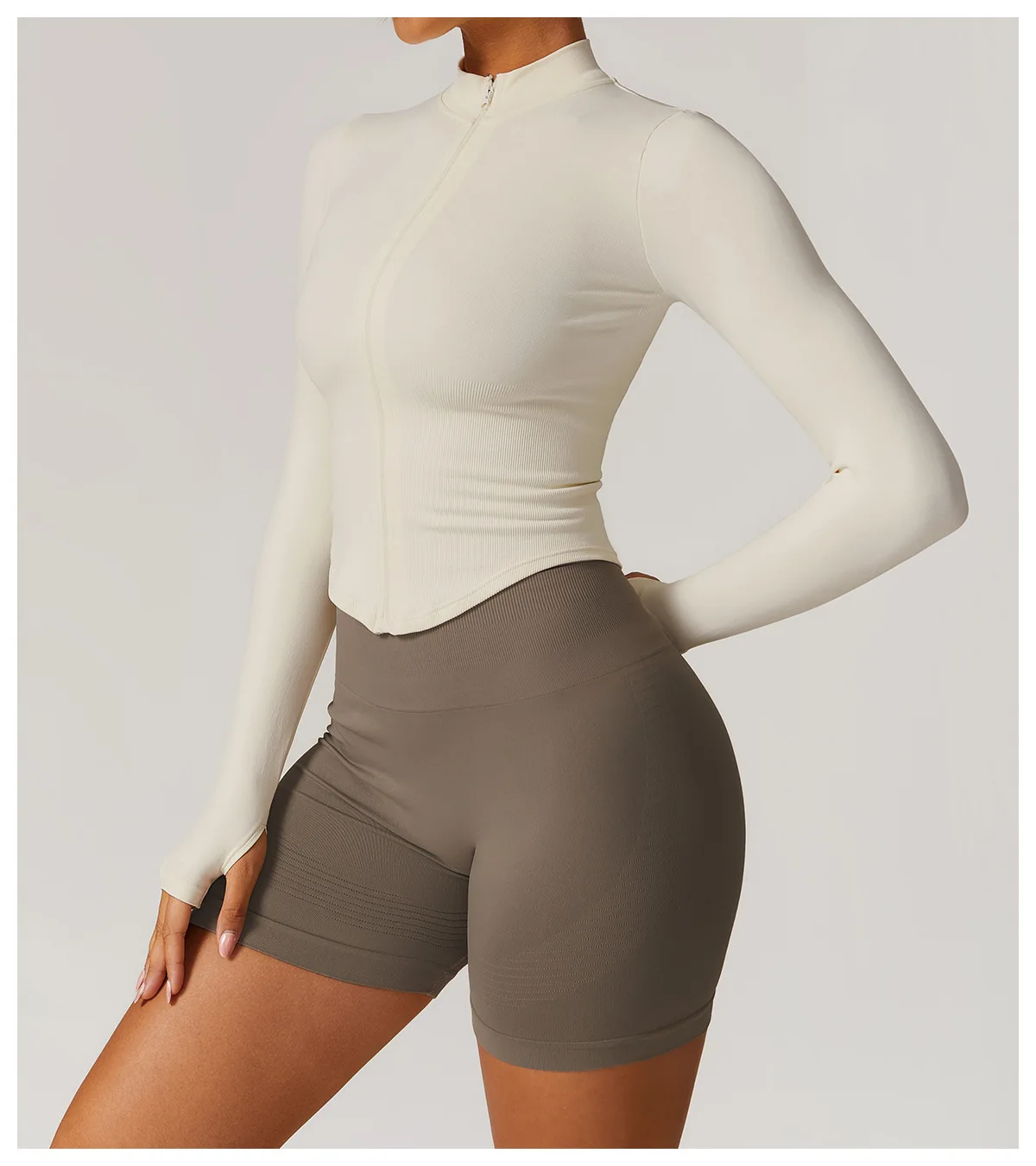 Seamless Fitness Running Zipper Workout Jacket Women Long Sleeve Sportswear Gym Top Female Quick-Dry Yoga Clothing Sport Coat
