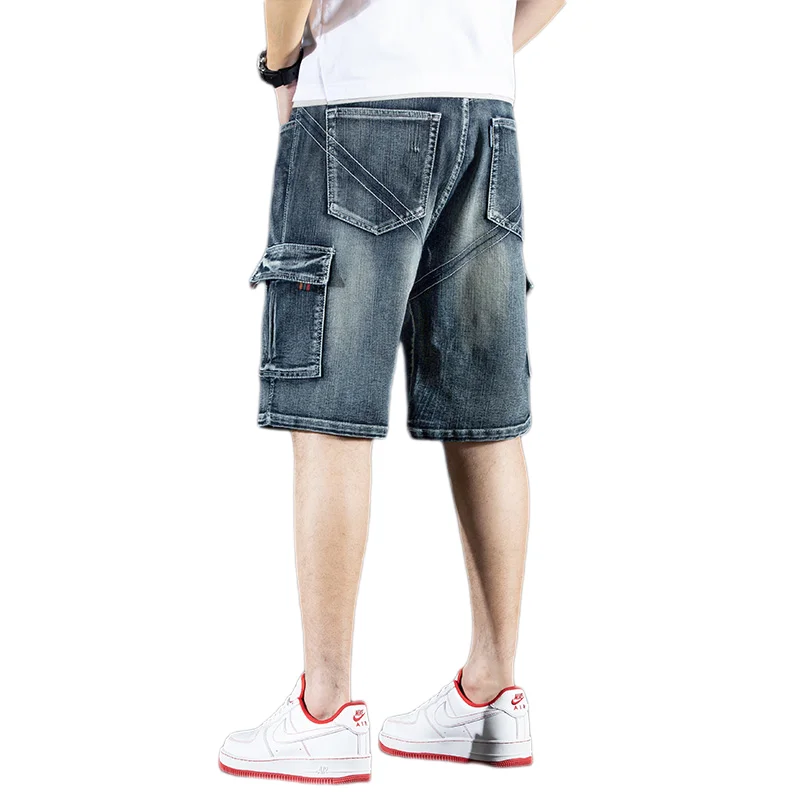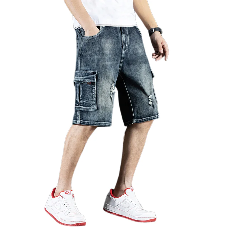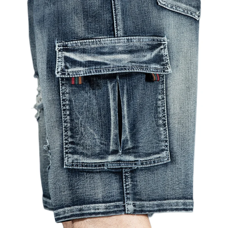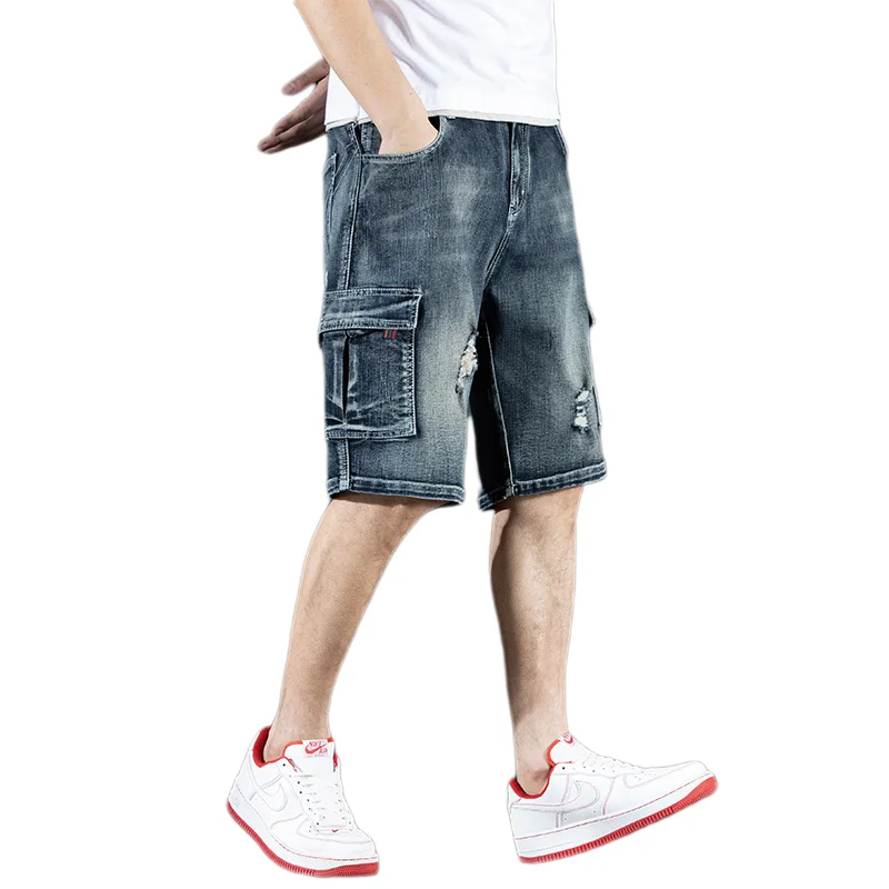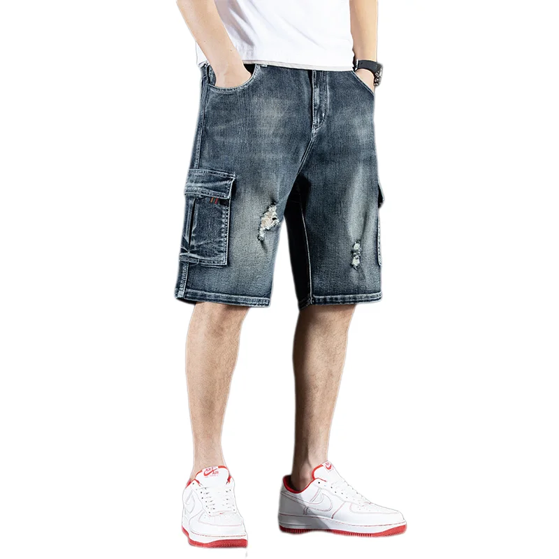 Summer New Jeans Men's Trendy Brand Piercing 5 Shorts Men's Loose Multi Pocket Work Pants Men's Outdoor Clothing