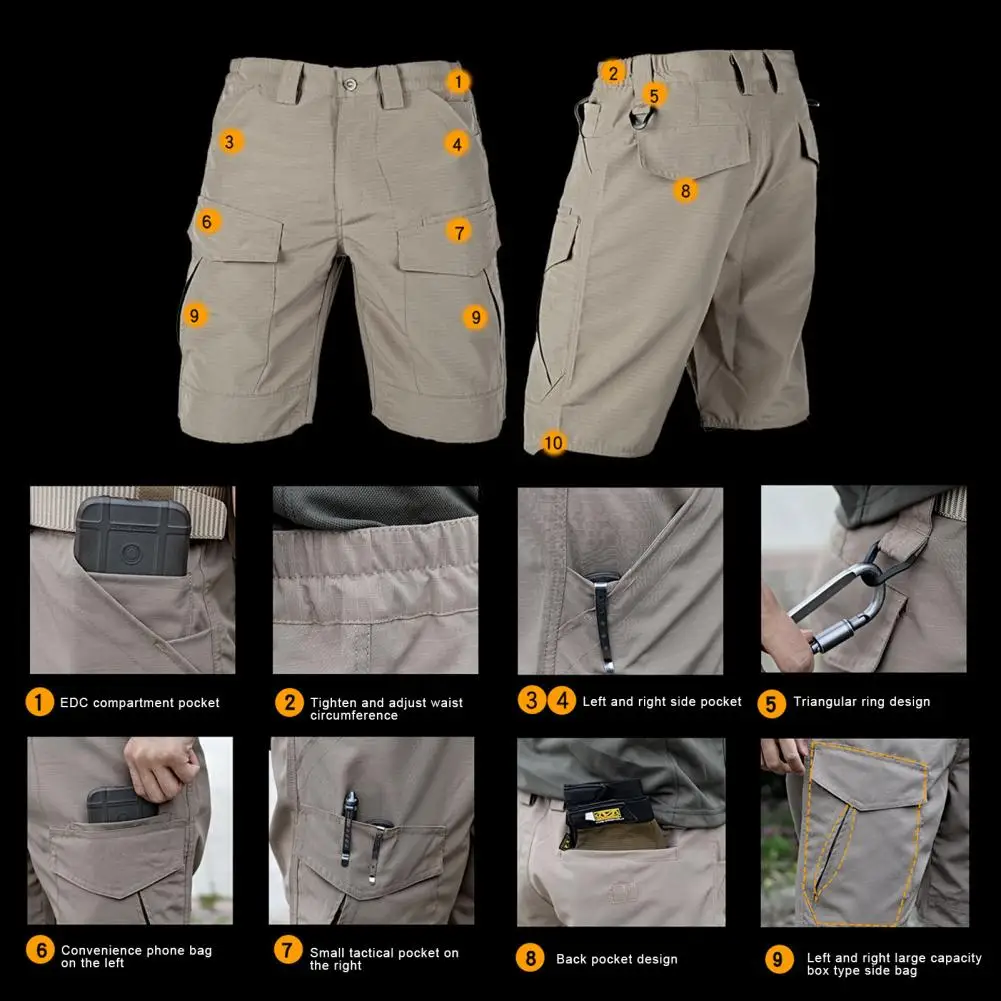 Summer Waterproof Quick Dry Multi-pocket Shorts Men Cargo Shorts Short Pants Men's Outdoor Clothes Hunting Fishing Short Pants