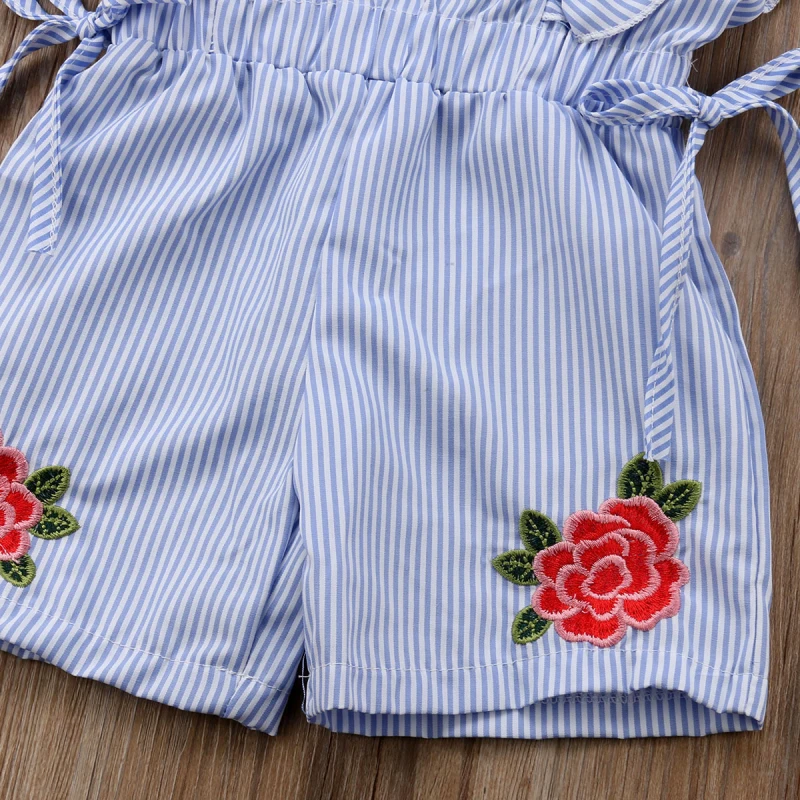 Toddler Kids Baby Girl Flower Stripe Ruffle Romper Jumpsuit Outfits Clothes