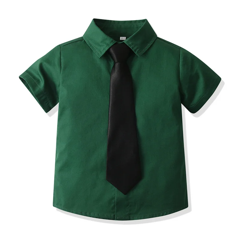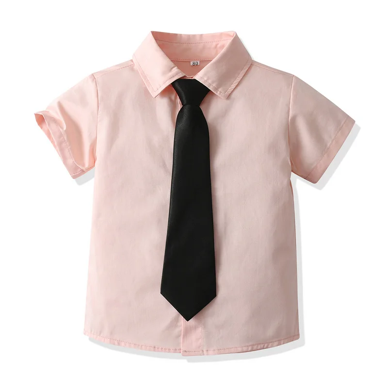 top and top Kids Boys Formal Shirts Toddler Boy Short Sleeve Lapel Casual Tops Children Gentleman Clothing for School Uniform