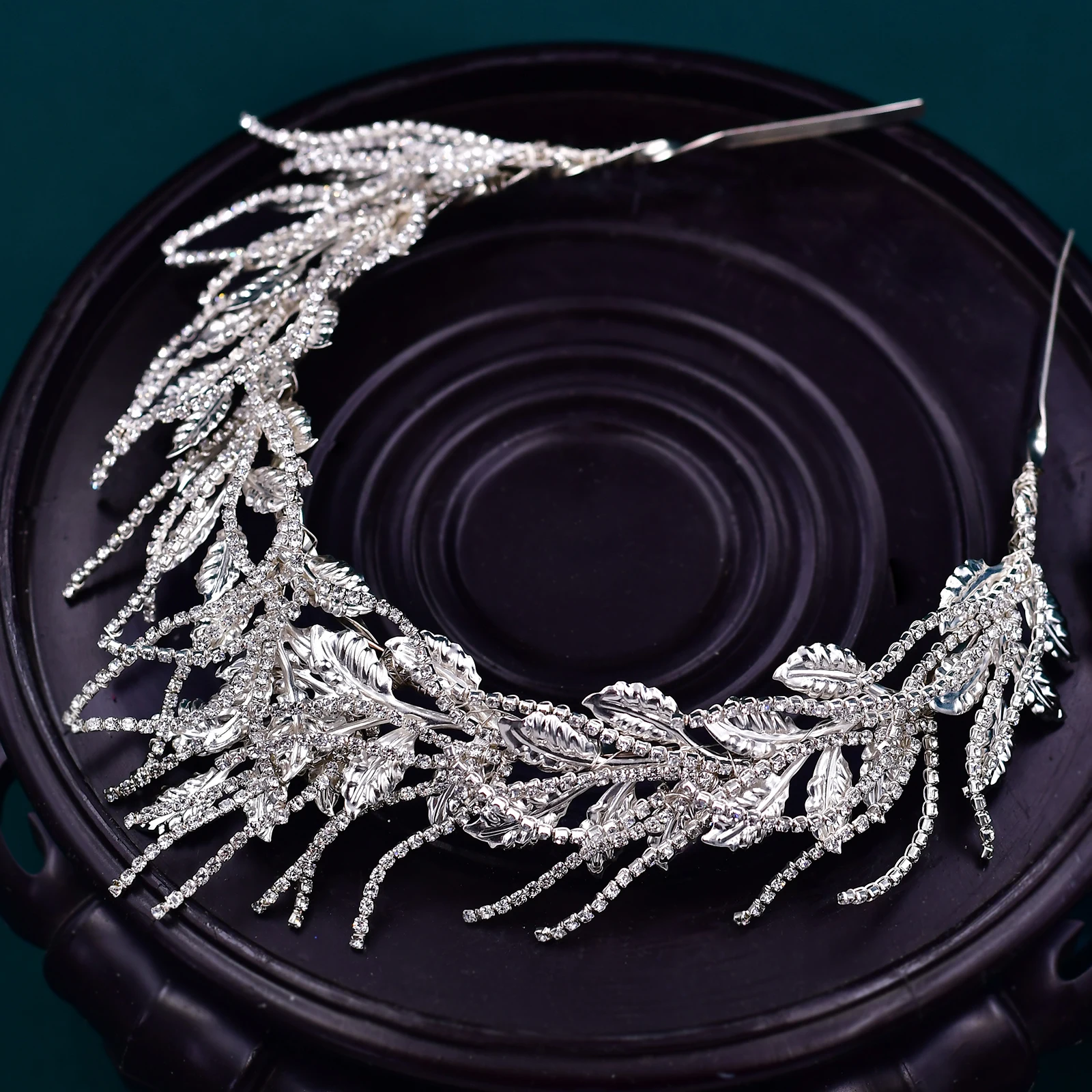 Wedding Tiara Bride Headband Shiny Rhinestone Crown for Bridal Hair Accessories Handmade Alloy Woman Headdress HP559