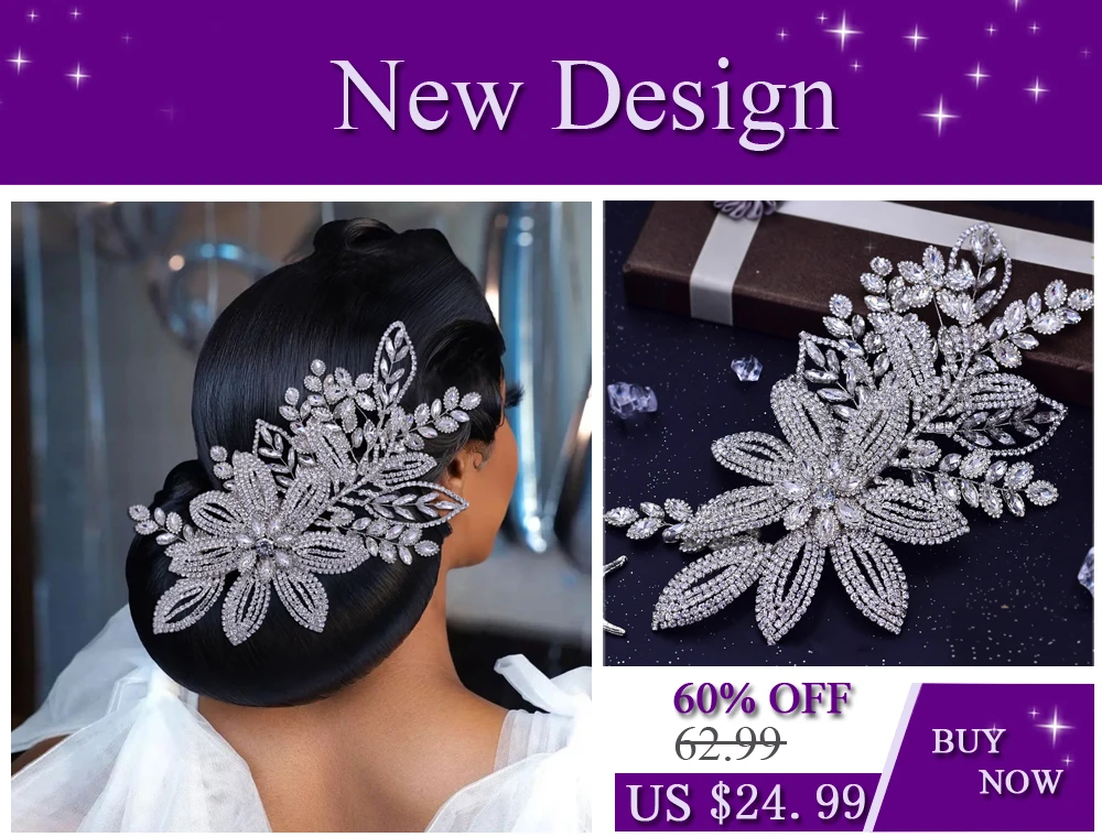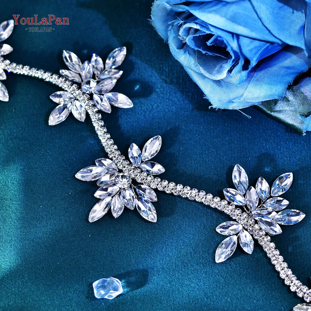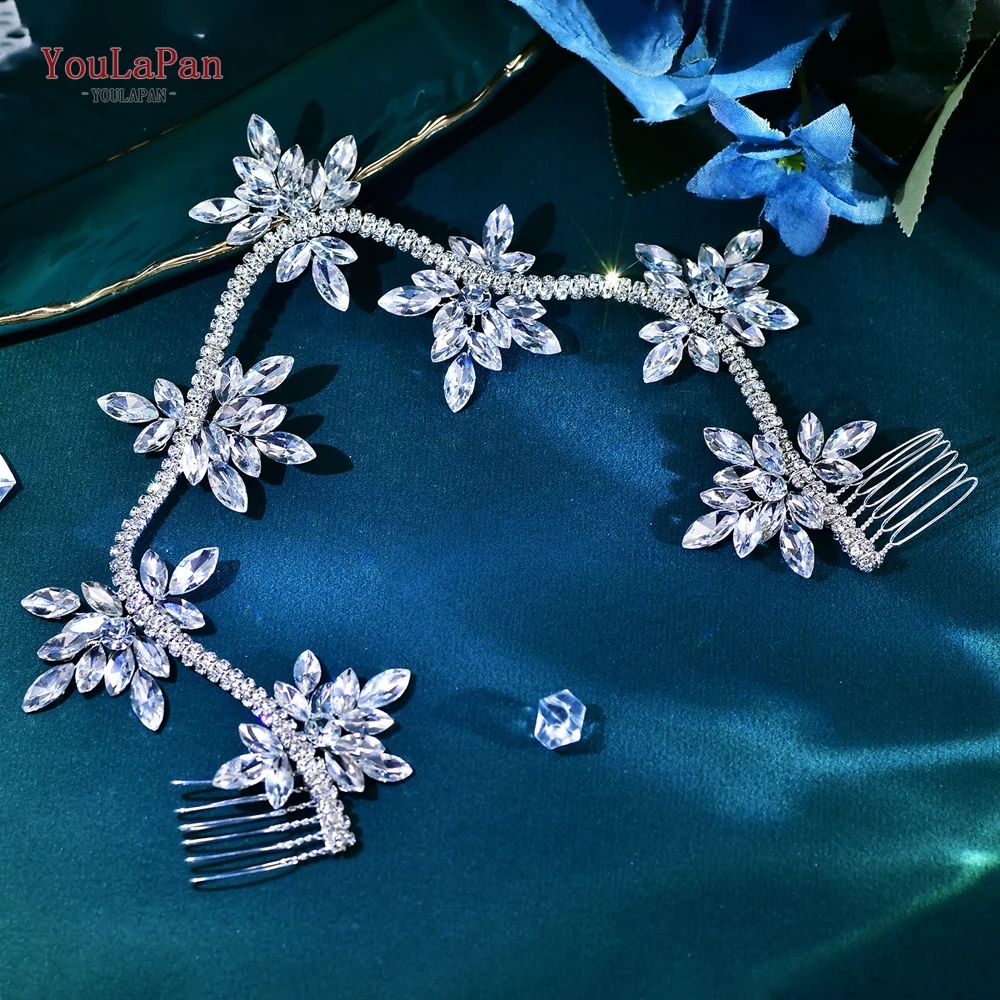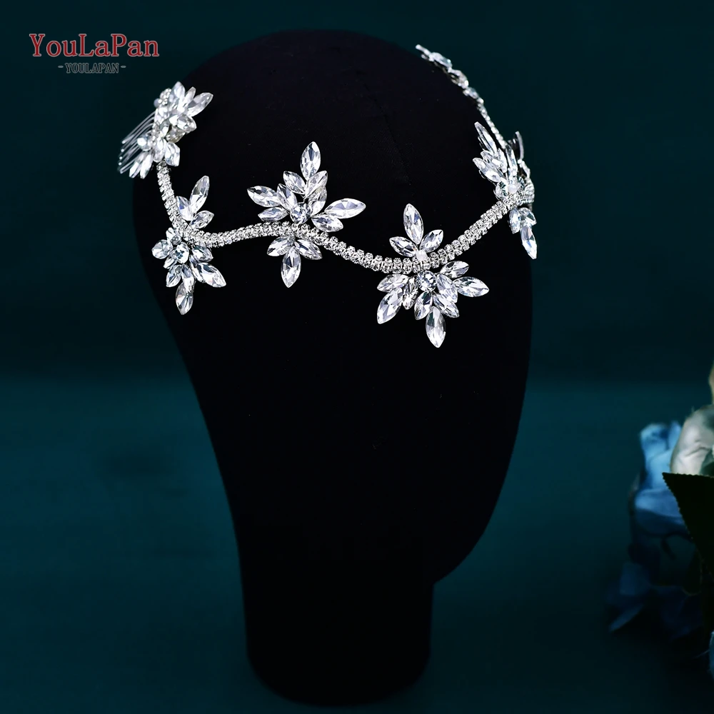 YouLaPan Crystal Flowers Hairpiece Bridal Wedding Hair Accessories Handmade Rhinestone Forehead Tiara Crown for Bride HP618