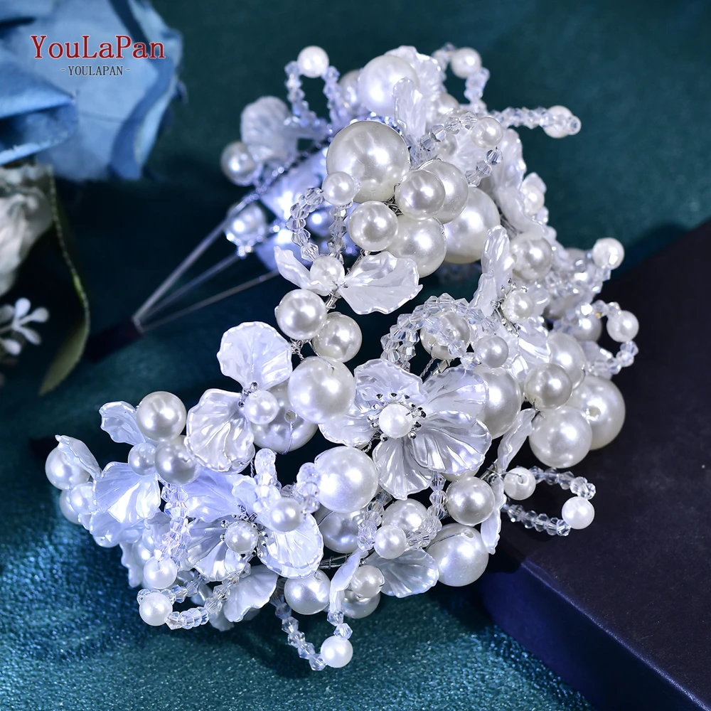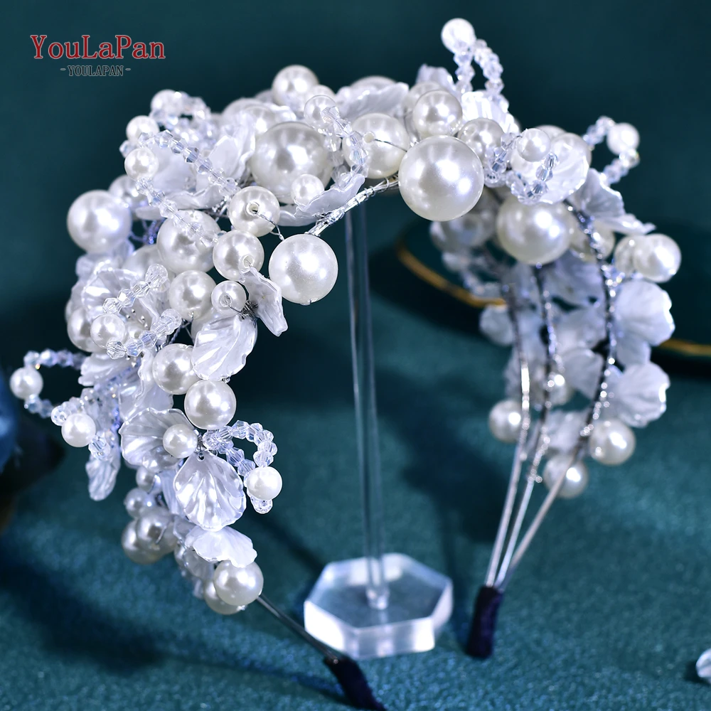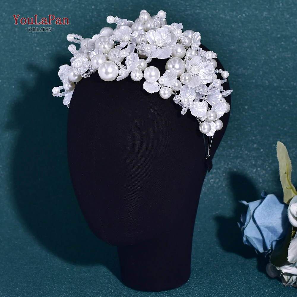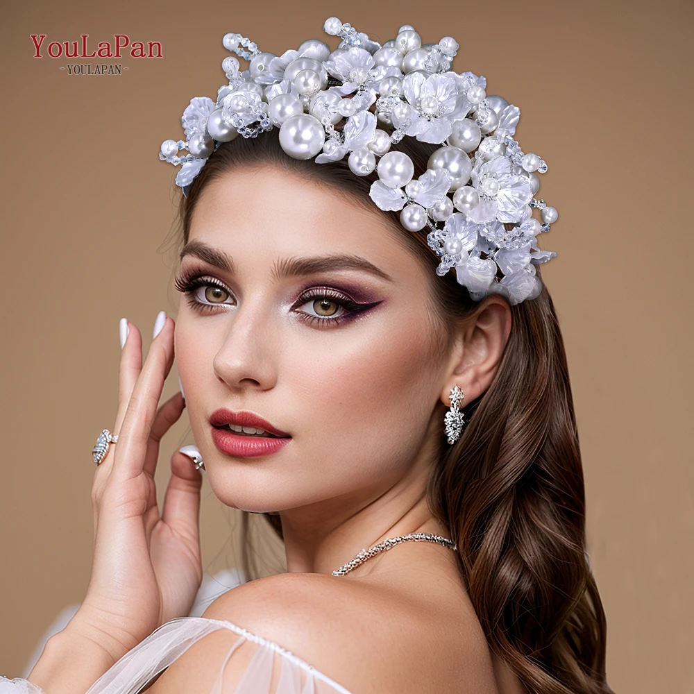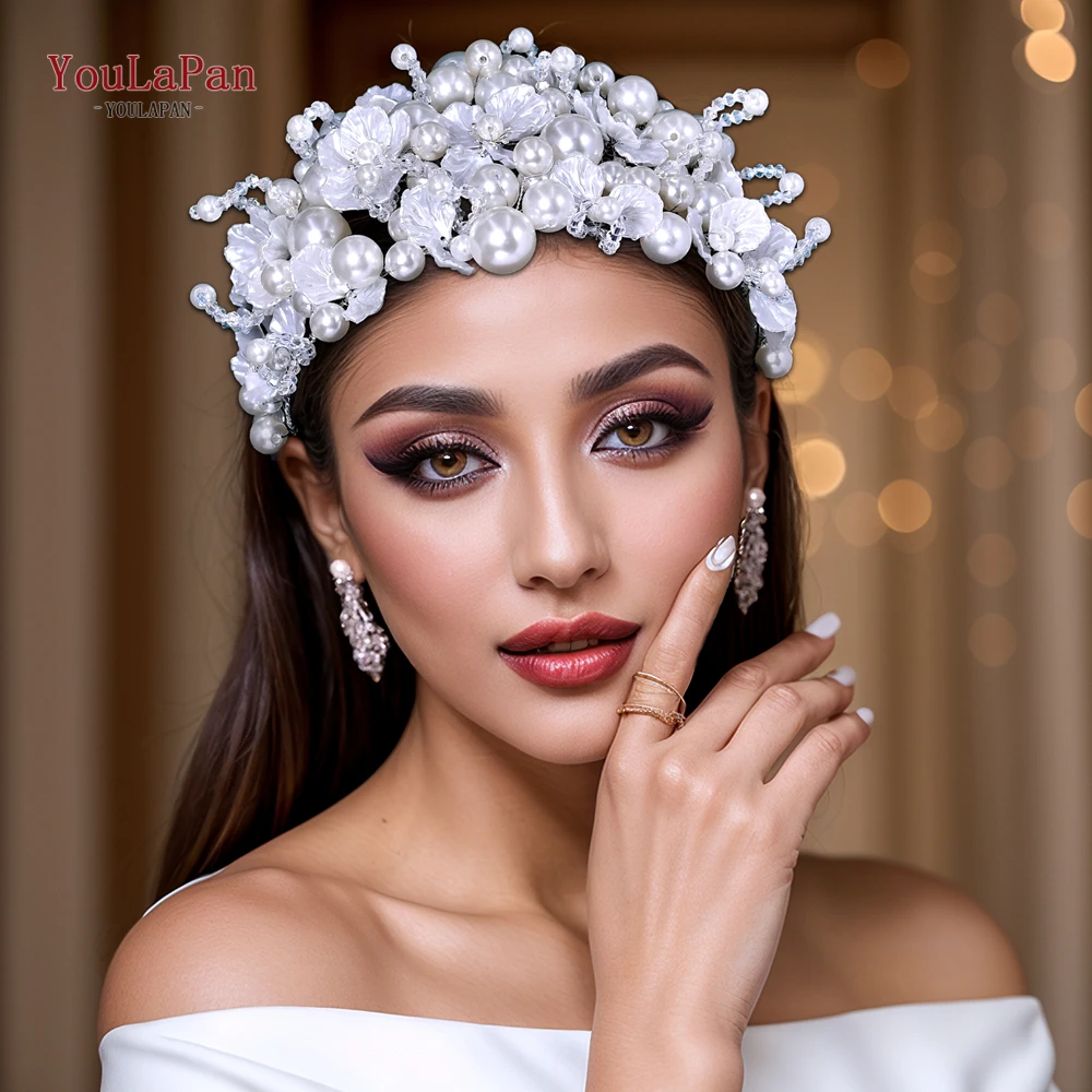 YouLaPan Luxurions Wedding Flower Head Hoop White Color Pearl Bride Headband Banquet Party Women Headwear Hair Accessories HP809